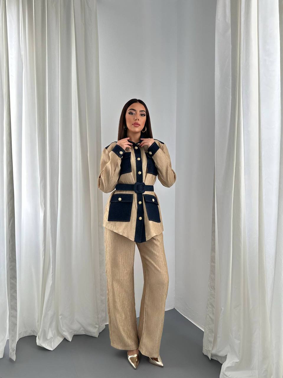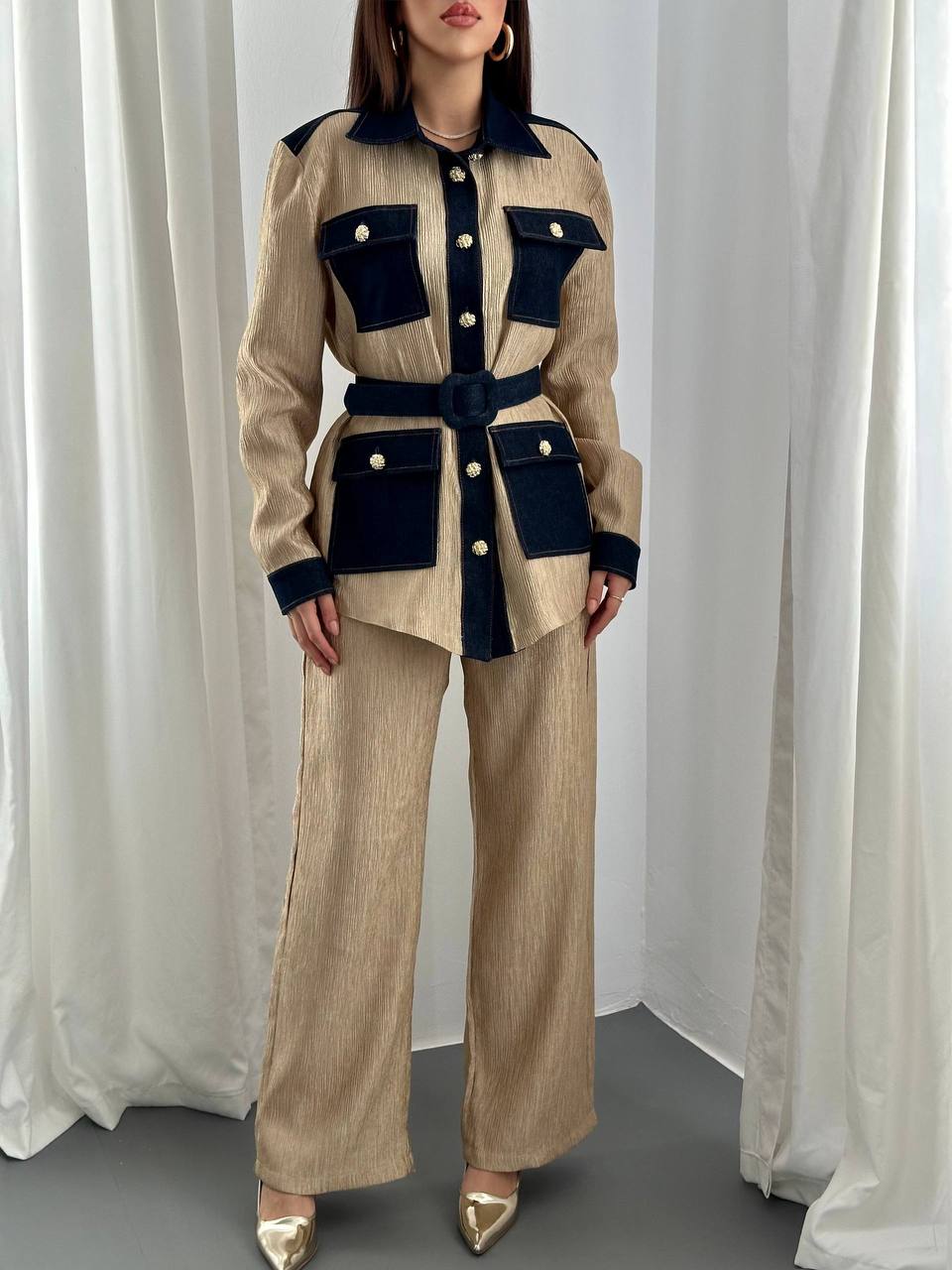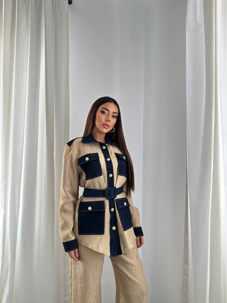 This Garnished Pocket Set combines stylish design with practical functionality, featuring carefully crafted pockets for organized convenience in everyday wear.